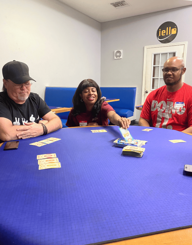 ![]() All smiles at our Happy Hour Event! | ![]() Board game night staying competitive as always!! |