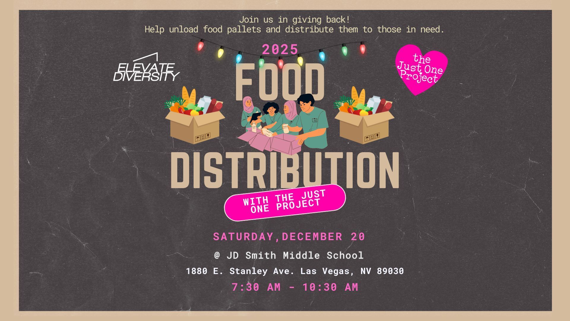 ✨ Start your Saturday with purpose! Join Elevate Diversity & The Just One Project every 3rd Saturday of the month in 2025 for a morning of impact and connection. We'll be at JD Smith Middle School to help unload food pallets and distribute them to those in need. Whether you’re assisting with client check-ins or helping with food distribution, your efforts will make a real difference in the community. 💛