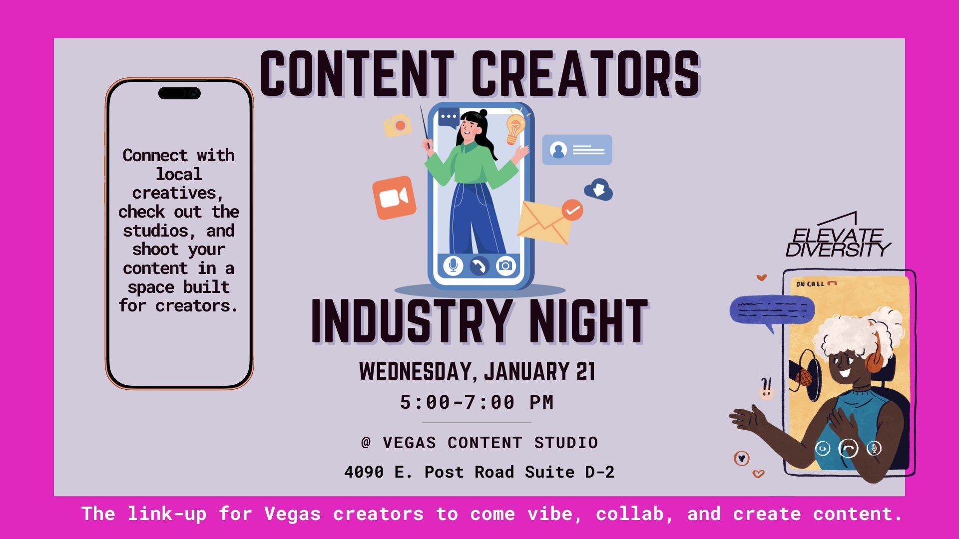 Join us for an exclusive night at Vegas Content Studio, built for creators, by creators. Whether you're a photographer, podcaster, influencer, or creative entrepreneur—this is your space to connect, learn, and create 🔥